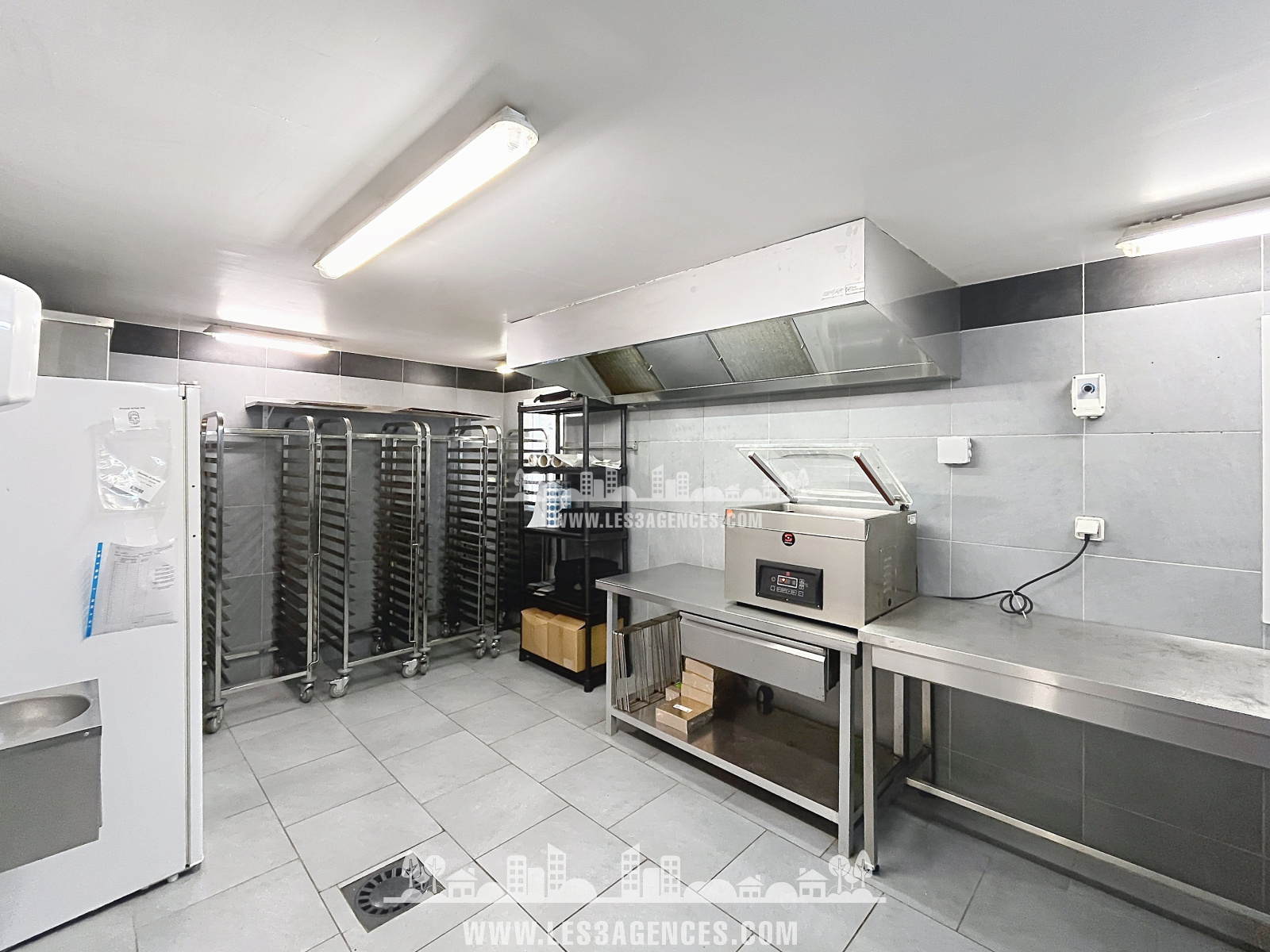 - un laboratoire de 100 m² composé d'une cuisine professionnelle équipée (sas de réception- zone de production- zone d'emballage et vestiaire ). Respect des normes HACCP.