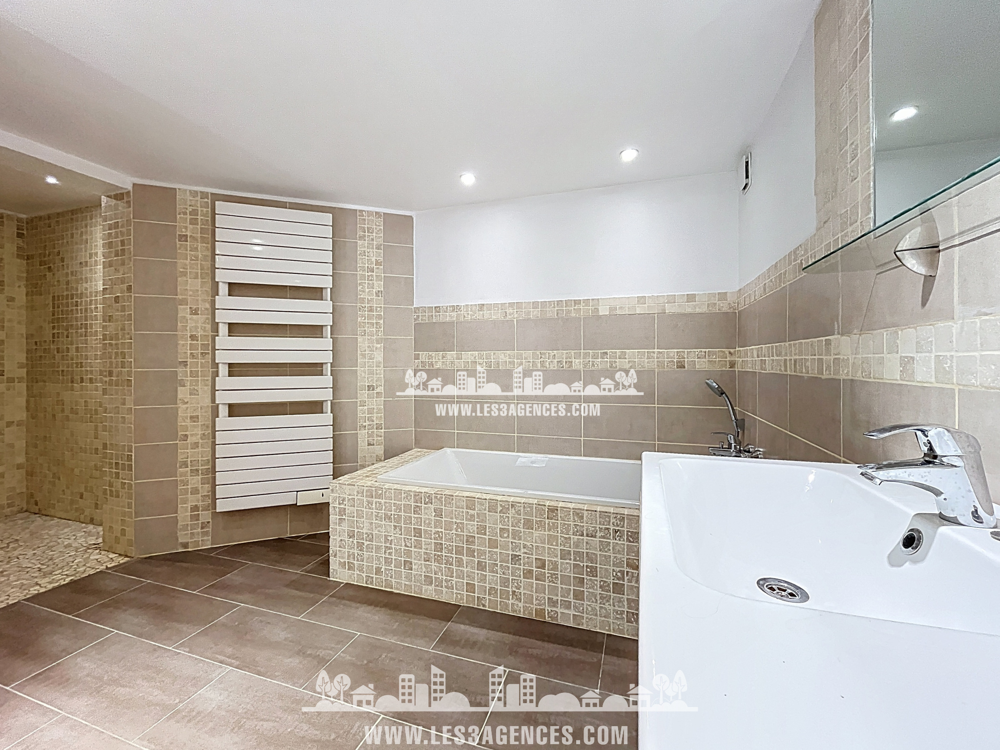 A niveau inférieur se trouve un appartement T2 de 42 m² indépendant avec son propre espace de détente extérieur qui vous permettra d’accueillir des invités ou de la proposer à la location.