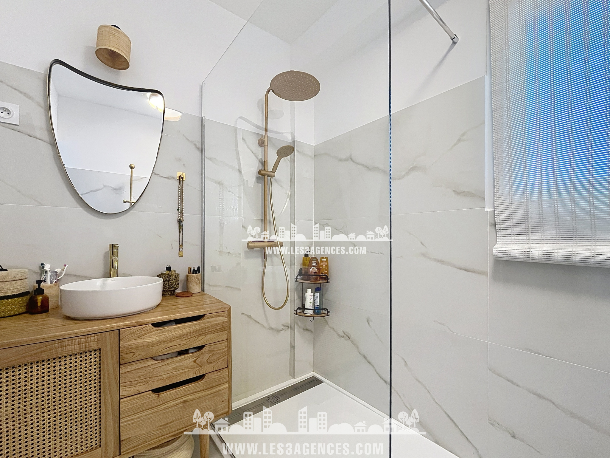 Coté nuit ,une première chambre en suite avec salle d’eau au look contemporain, wc séparés, une deuxième chambre avec rangements.