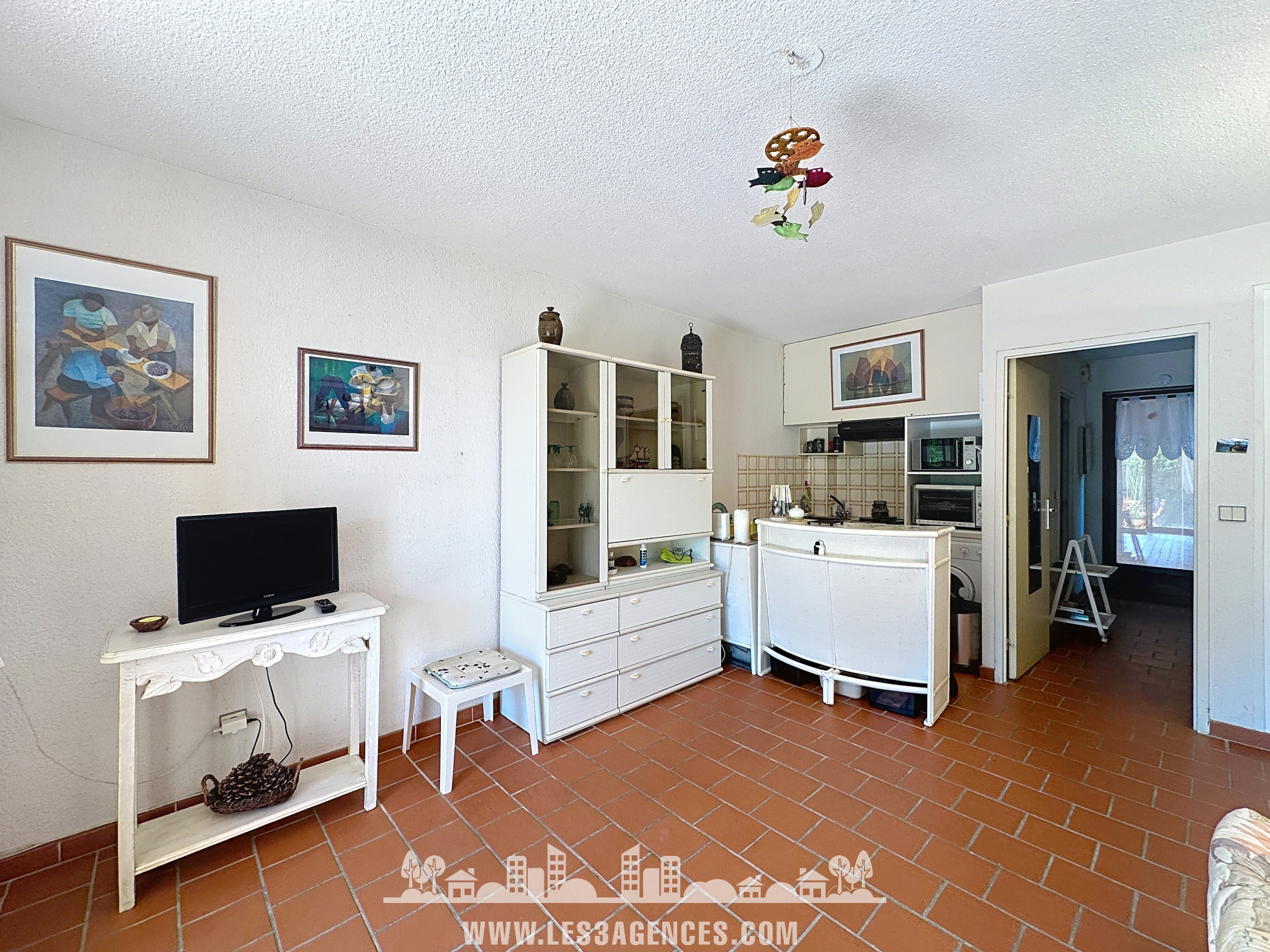 Le bien de 30.49 m2 habitable se compose d'un lumineux séjour avec placard, d'une cuisine ouverte, d'un coin cabine avec un lit superposé, d'une salle de bains avec WC.