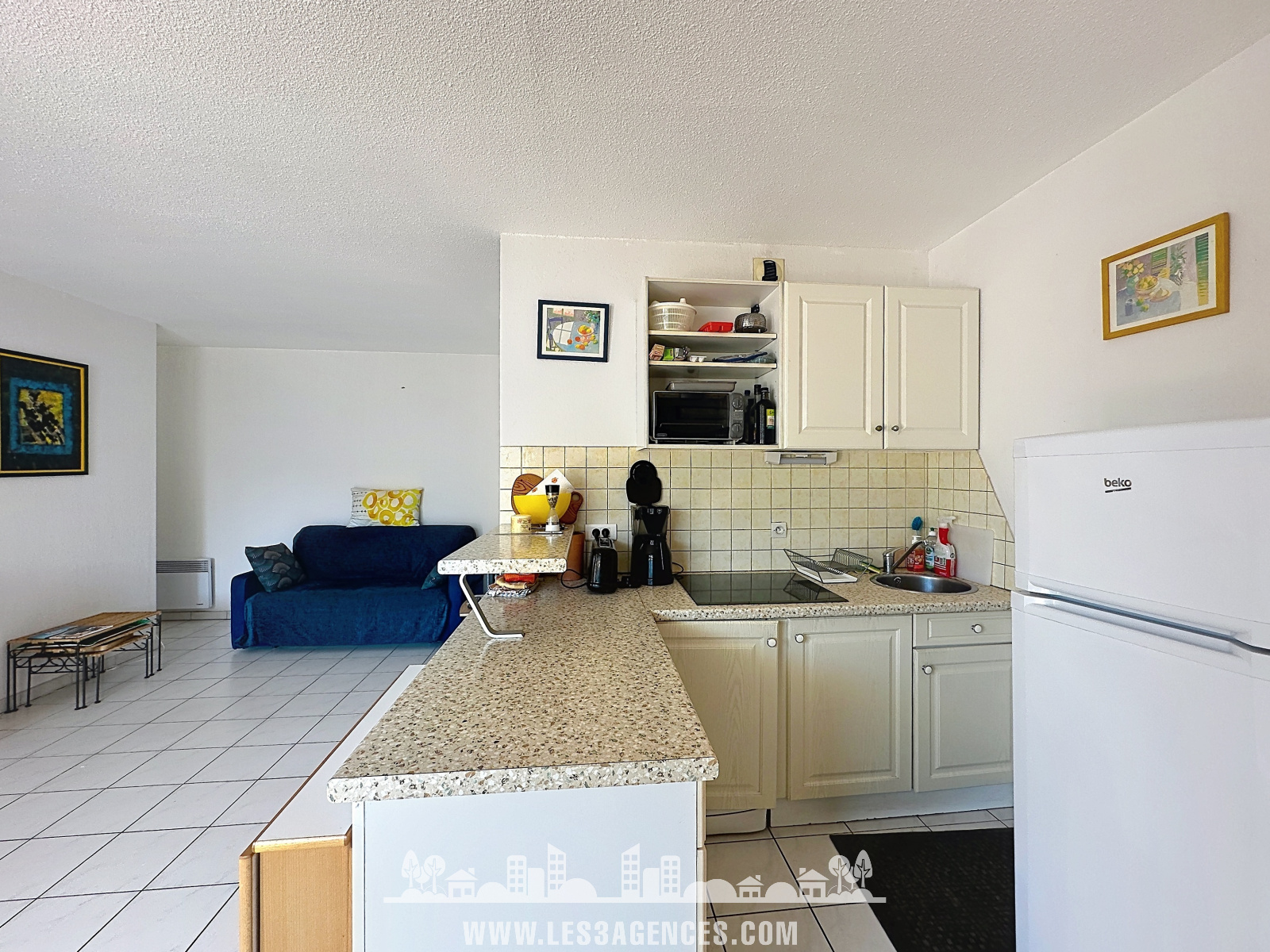 L’appartement se compose d’une entrée desservant une agréable pièce de vie avec cuisine ouverte sur le séjour, offrant un espace convivial et lumineux. Vous trouverez également une chambre avec dressing, un coin nuit cabine avec rangements, une salle d’eau ainsi qu’un WC indépendant.