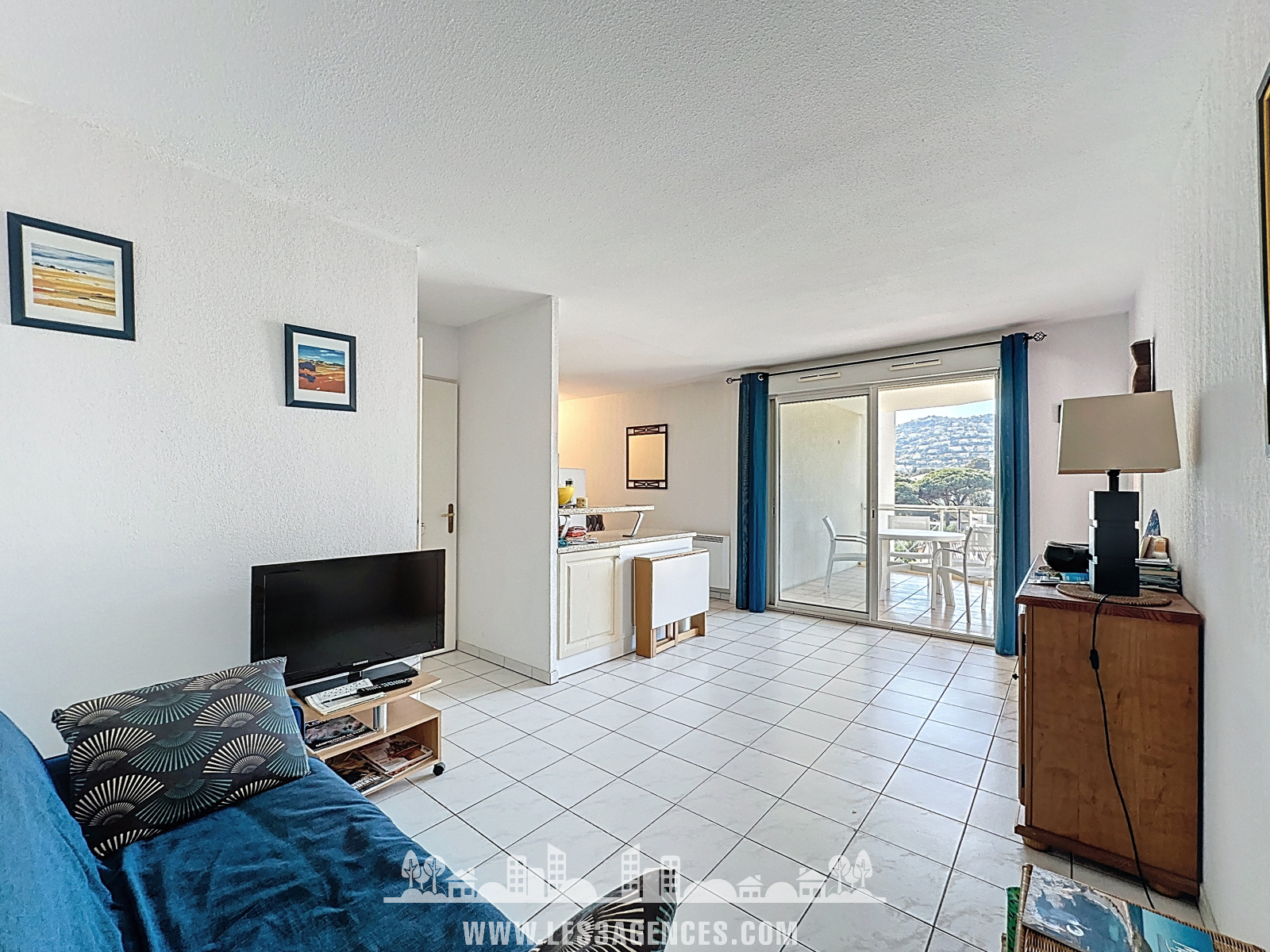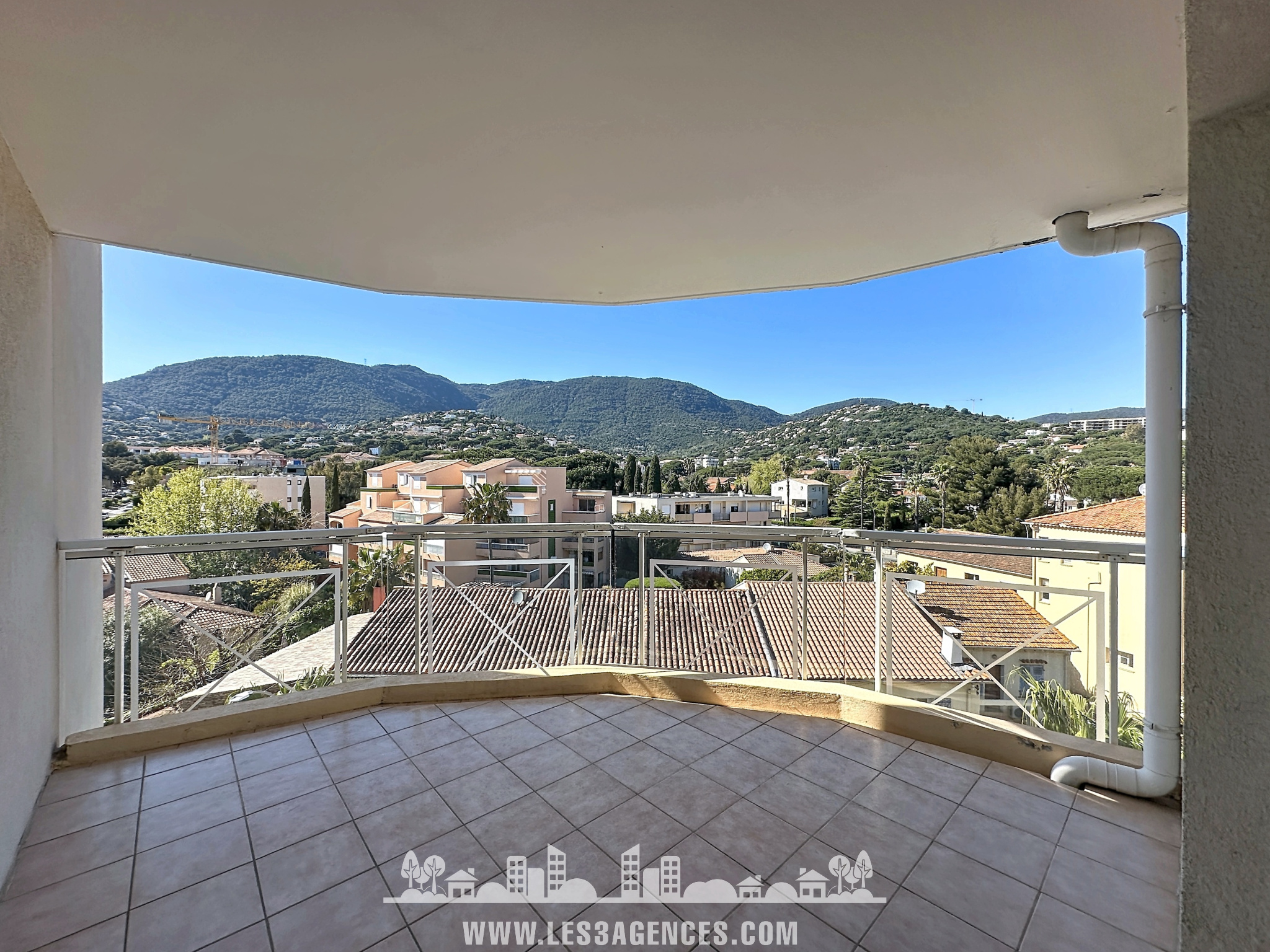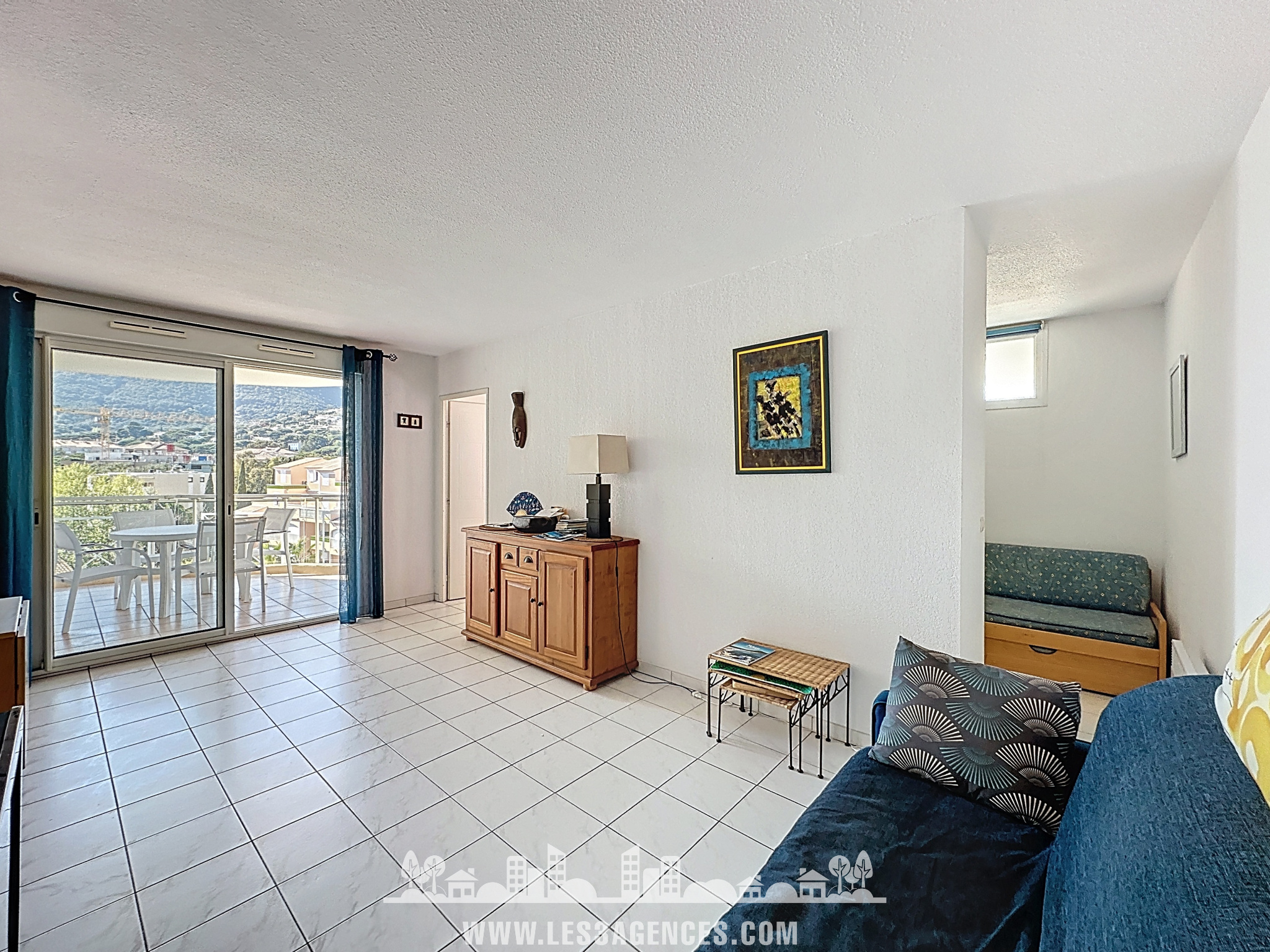 Le séjour s’ouvre sur un balcon bénéficiant d’une belle vue dégagée sur les collines, idéal pour profiter pleinement de l’environnement.