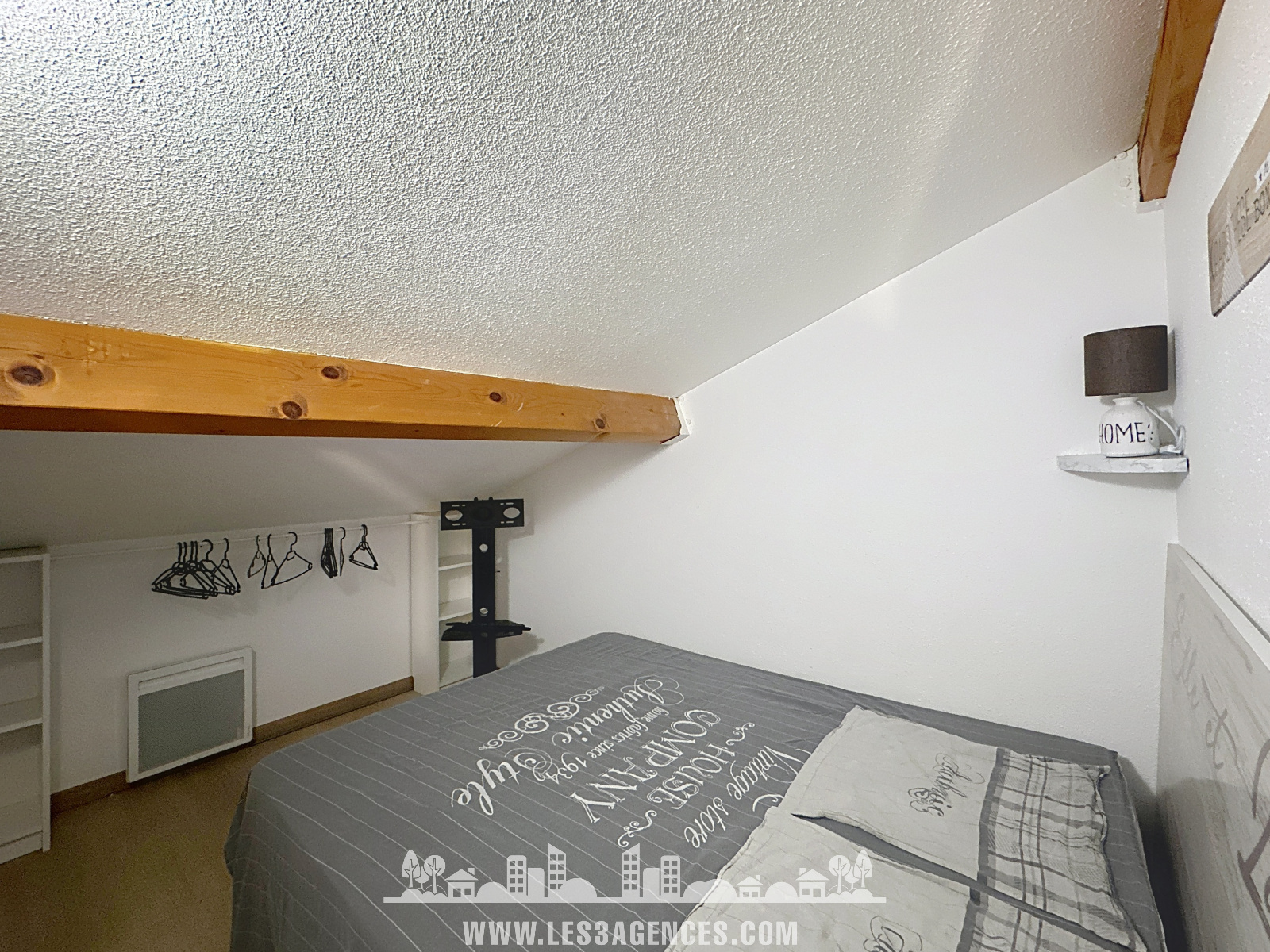 À l’étage, l’espace nuit offre une seconde salle d’eau, un coin bureau – parfait pour le télétravail ou un couchage d’appoint – ainsi qu’une chambre confortable.