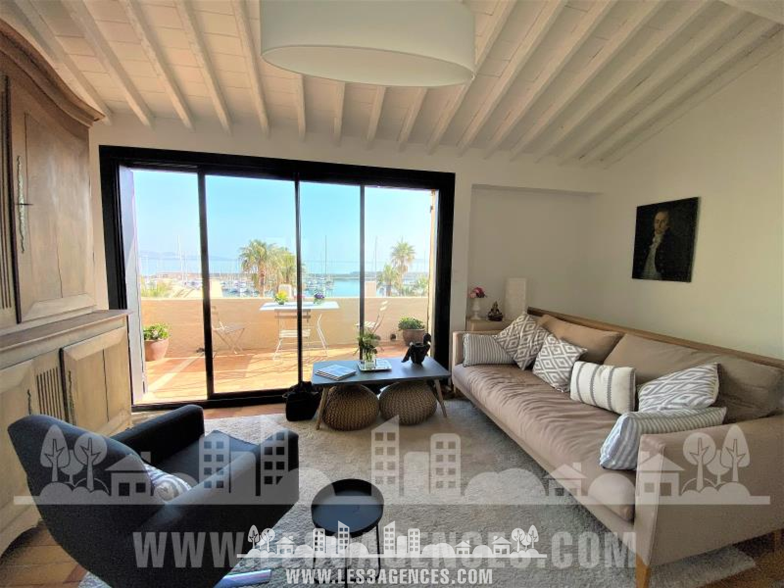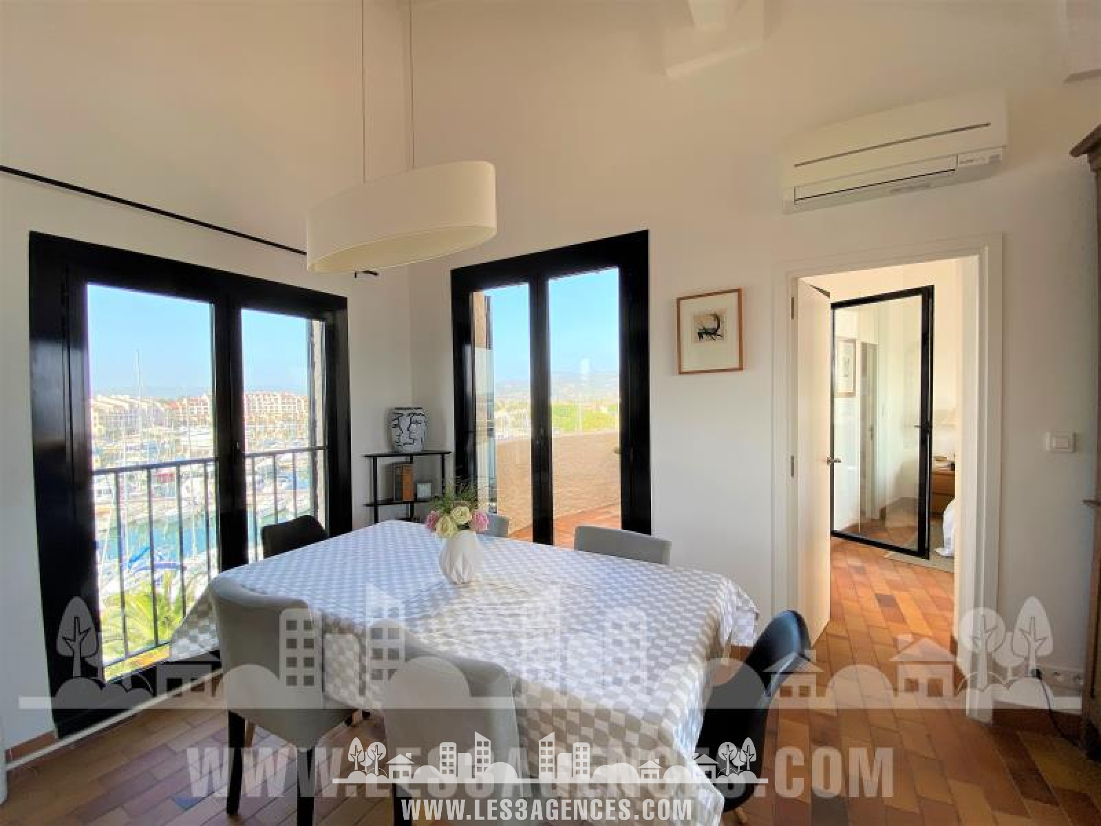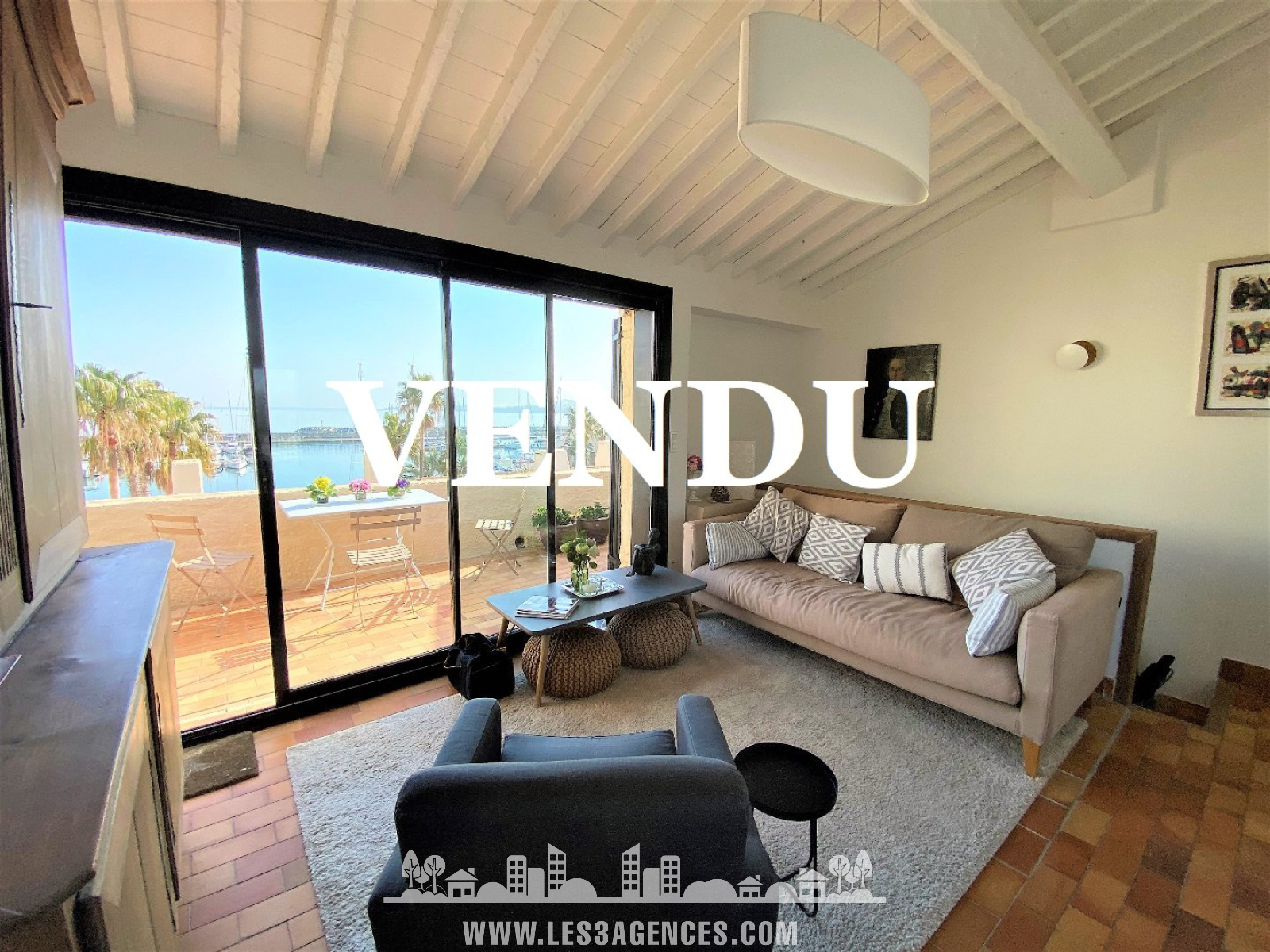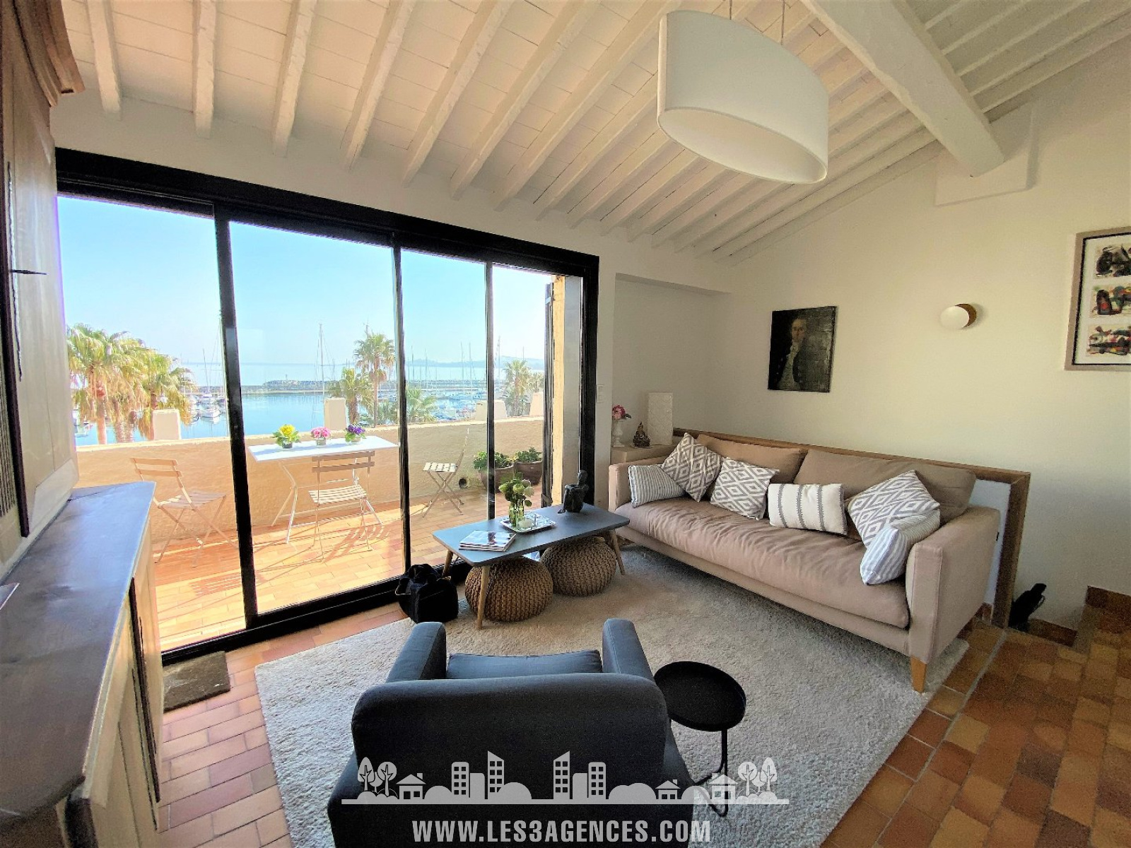 MARINES DE COGOLIN ~~La Brigantine ~~Dans résidence de haut standing classé Architecture contemporaine remarquable, appartement duplex T4 traversant avec double exposition et magnifique vue mer et golfe de St Tropez. ~Entièrement rénové avec soin et beaucoup de cachet, il se compose de la manière suivante: ~-Un hall d'entrée avec rangements sous escaliers - 2 chambres dont une avec sa terrasse vue marina -une sdd avec wc, à l'étage un spacieux sejour traversant ouvrant sur 2 belles terrasses , une avec vue mer et golfe et l'autre vue sur le port de plaisance, une cuisine ouverte équipée et aménagée sur un espace salle à manger - une 3ème chambre avec une 2ème sdd et son wc. ~Au total 75m2 de bonheur à visiter sans tarder, idéal en résidence secondaire ou principale.
